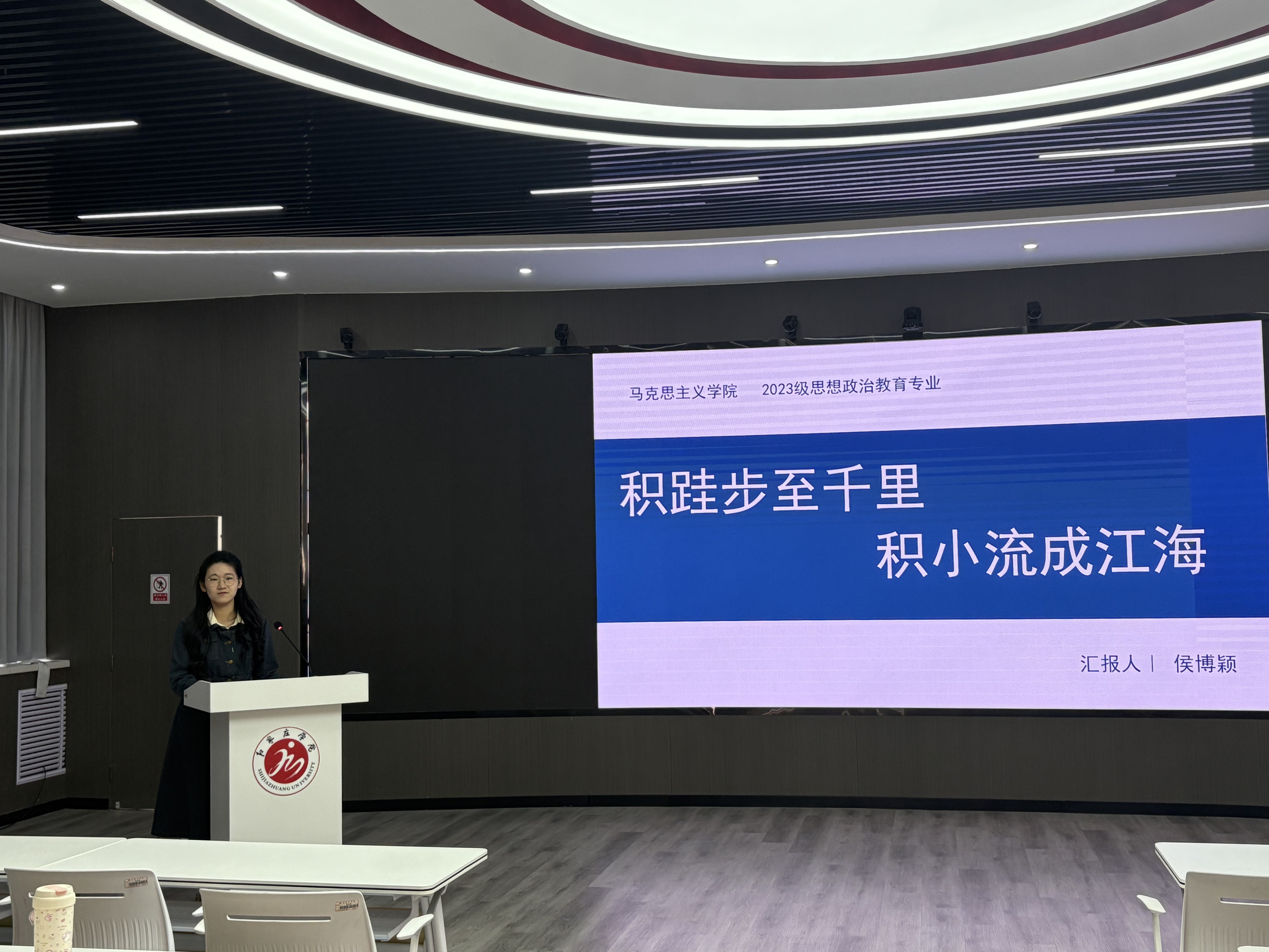 在经验分享环节,2023级刘炳琦同学从学科竞赛经验出发,深入阐释“初心、决心、恒心、匠心”的“四心”精神,鼓励新生在挑战中实现自我超越;2023级侯博颖同学系统讲解专业课学习方法,强调“功在坚持”的学术态度,并就学业规划与心态调节提出实用建议;2023级苏欲晓同学结合团支部建设实践,解析优秀集体构建的核心要素,展现思想引领与组织活力协同发展的有效路径;2024级李天玥同学则通过分享自身参赛经历,总结师范生技能训练的关键要点,为新生专业发展提供了清晰指引。