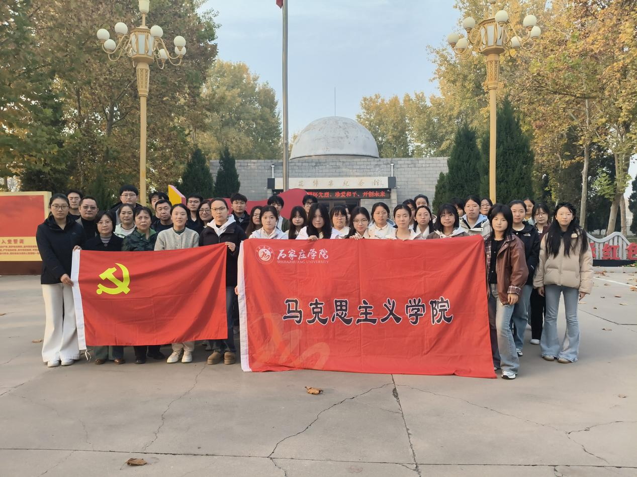 2025年11月11日下午,我院思想政治教育专业党支部联合学院团支部,赴“梅花惨案”纪念馆与中车石家庄车辆有限公司开展“铭史鉴往,深学笃行”主题党日活动。师生党员与团员代表共同参与,在红色教育与时代实践中凝聚奋进力量。