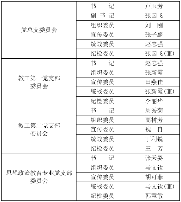 马克思主义学院党总支下设3个党支部,现有党员54人。
